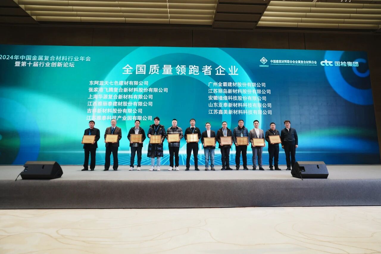 12月19日,金屬復(fù)合裝飾材料行業(yè)年會(huì)暨第十屆行業(yè)創(chuàng)新論壇在寧波市順利召開。大會(huì)由中國(guó)建筑材料聯(lián)合會(huì)金屬復(fù)合材料分會(huì)(以下簡(jiǎn)稱金屬分會(huì))、中國(guó)國(guó)檢測(cè)試控股集團(tuán)股份有限公司(以下簡(jiǎn)稱國(guó)檢集團(tuán))主辦。分會(huì)副理事長(zhǎng)單位、常務(wù)理事單位、專家、學(xué)者和企業(yè)家代表參加了本次會(huì)議,雅泰實(shí)業(yè)集團(tuán)作為副理事長(zhǎng)單位應(yīng)邀出席。